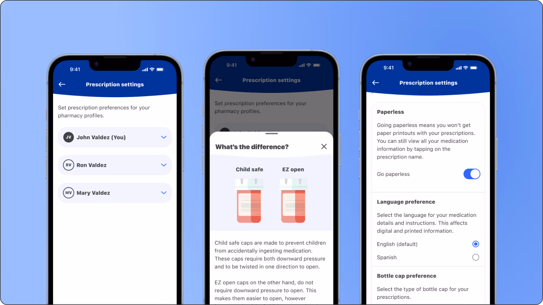 Designed multi-family account interactions, informational pop-ups, and additional settings.